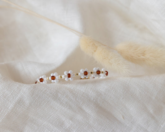 PRODUCT DETAILS White and Brown Miyuki seed beads, and gold Toho beads Stainless steel clasps...