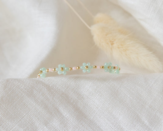 PRODUCT DETAILS Mint and Salmon color glass beads, and golden Toho beads Stainless steel clasps...