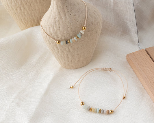 DÉTAILS DU PRODUIT Rondelle en amazonite - 4mm Rondelle et perles dorées en acier inoxydable...