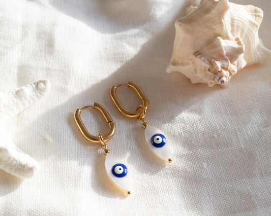 DÉTAILS DU PRODUIT - BOUCLES D'OREILLES Charme contre le mauvais œil Boucle d'oreille ovale en...