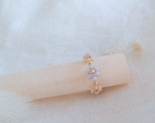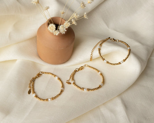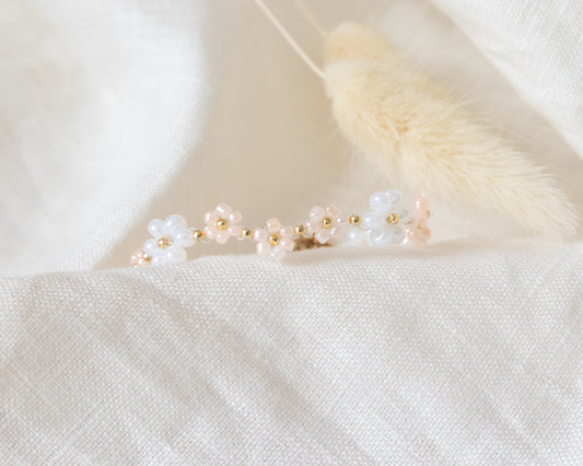 DÉTAILS DU PRODUIT Perles blanches, perles en verre couleur saumon clair et perles Toho dorées...
