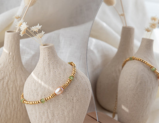 DÉTAILS DU PRODUIT Perle d'eau douce de haute qualité (couleur champagne) Pépites de péridot irrégulières...