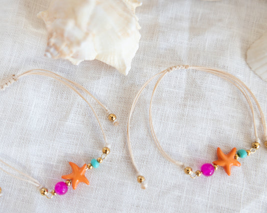 DÉTAILS DU PRODUIT - BRACELETPierre étoile de merPerles en verre rose vifPerle de rocaille bleuePerles...