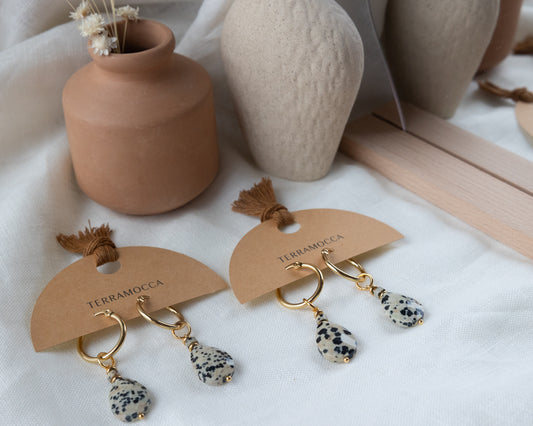 DÉTAILS DU PRODUIT Boucles d'oreilles en acier inoxydable - 20 mm pierre dalmatienne Longueur des...