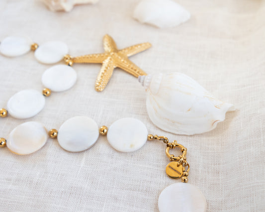 DÉTAILS DU PRODUIT - COLLier Coquille blanche arrondie - 25 mm Étoile de mer en...