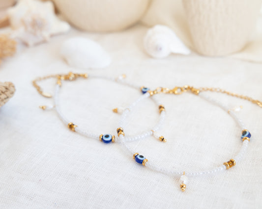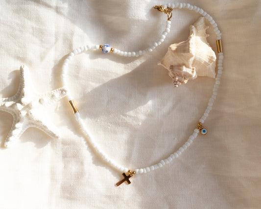 DÉTAILS DU PRODUIT - COLLier Perles de verre blanches Perle en céramique Charme œil maléfique...