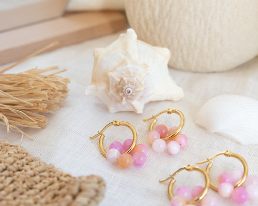 DÉTAILS DU PRODUIT - BOUCLES D'OREILLESPerles en verre rose/pêcheBoucles d'oreilles en acier inoxydable - 20mmCONSEILS...