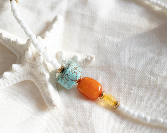 DÉTAILS DU PRODUIT - COLLier Perles de verre blanches Quartz teinté en orange Pierre citrine...