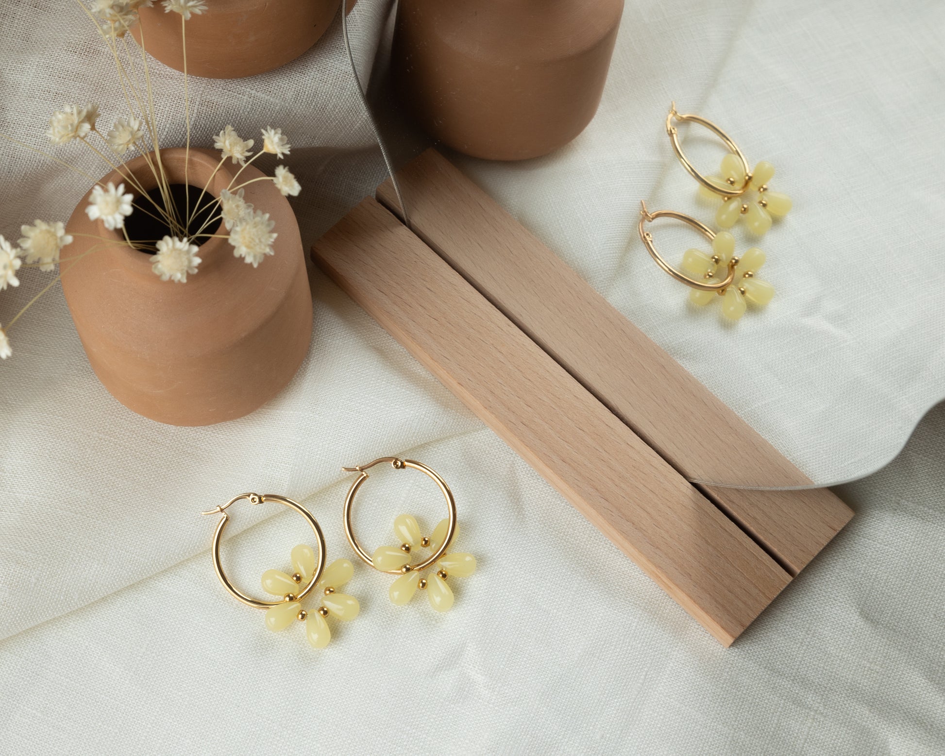 - Perles en verre jaunes