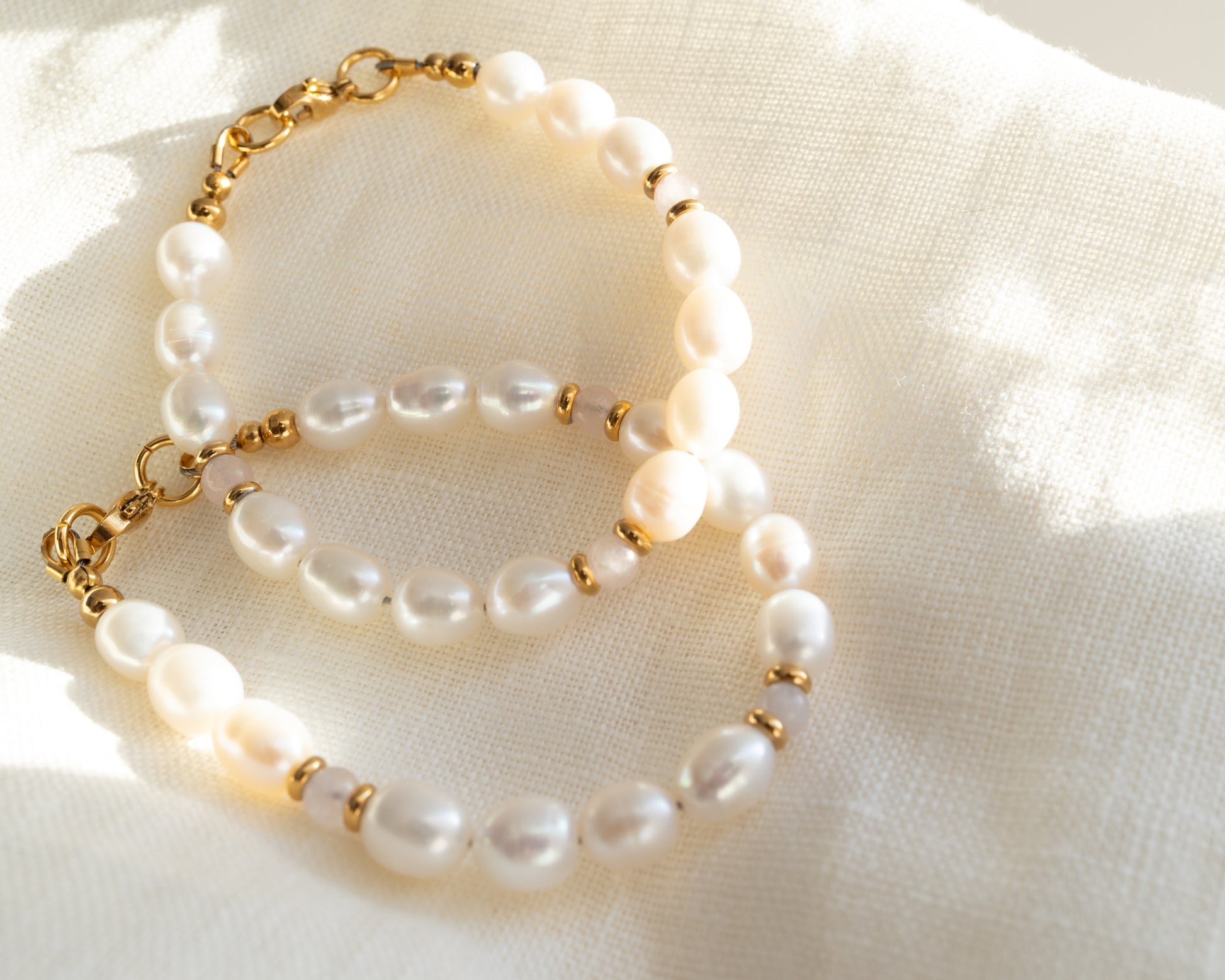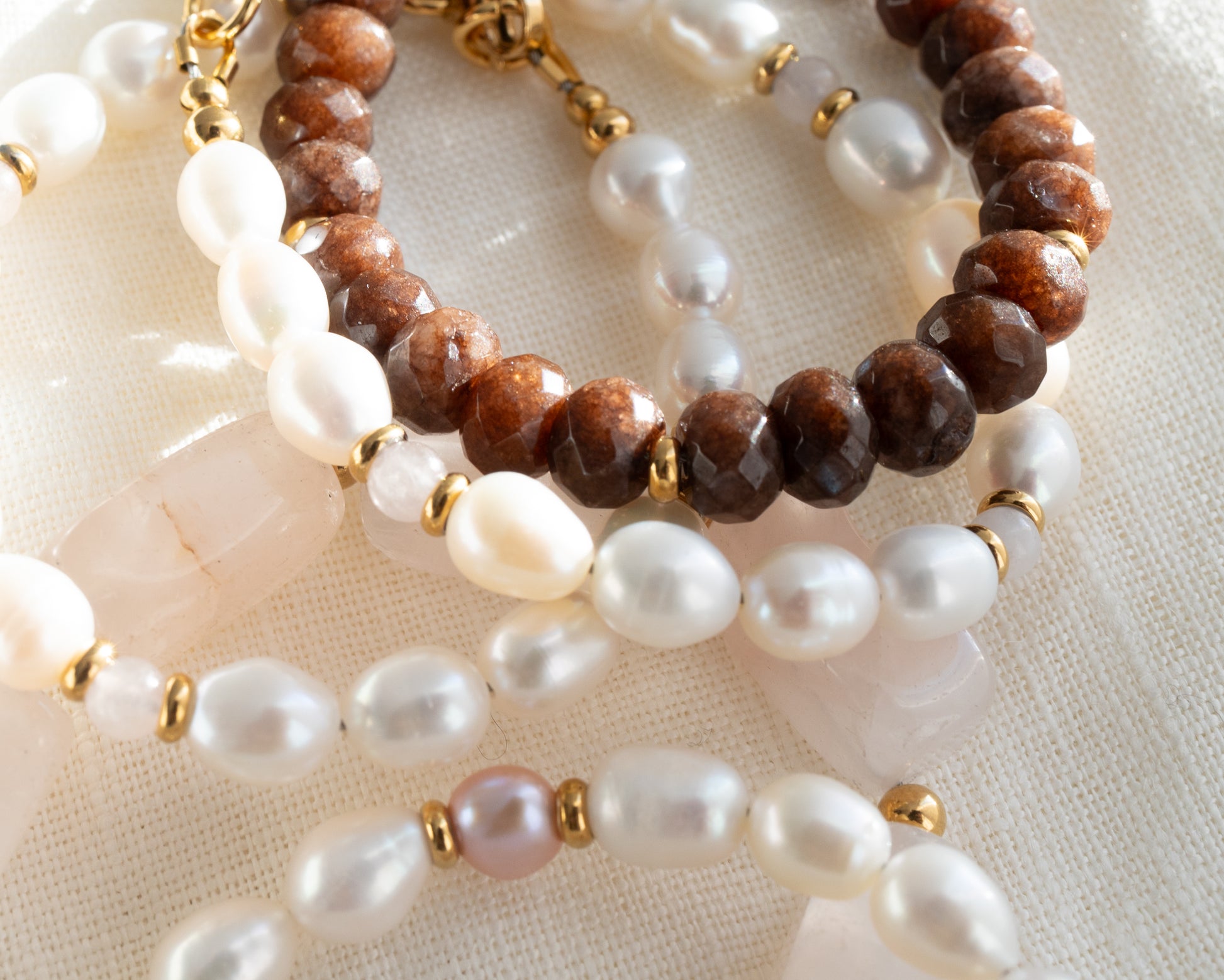 - Irregular white Freshwater Pearls & Pink Quartz beads